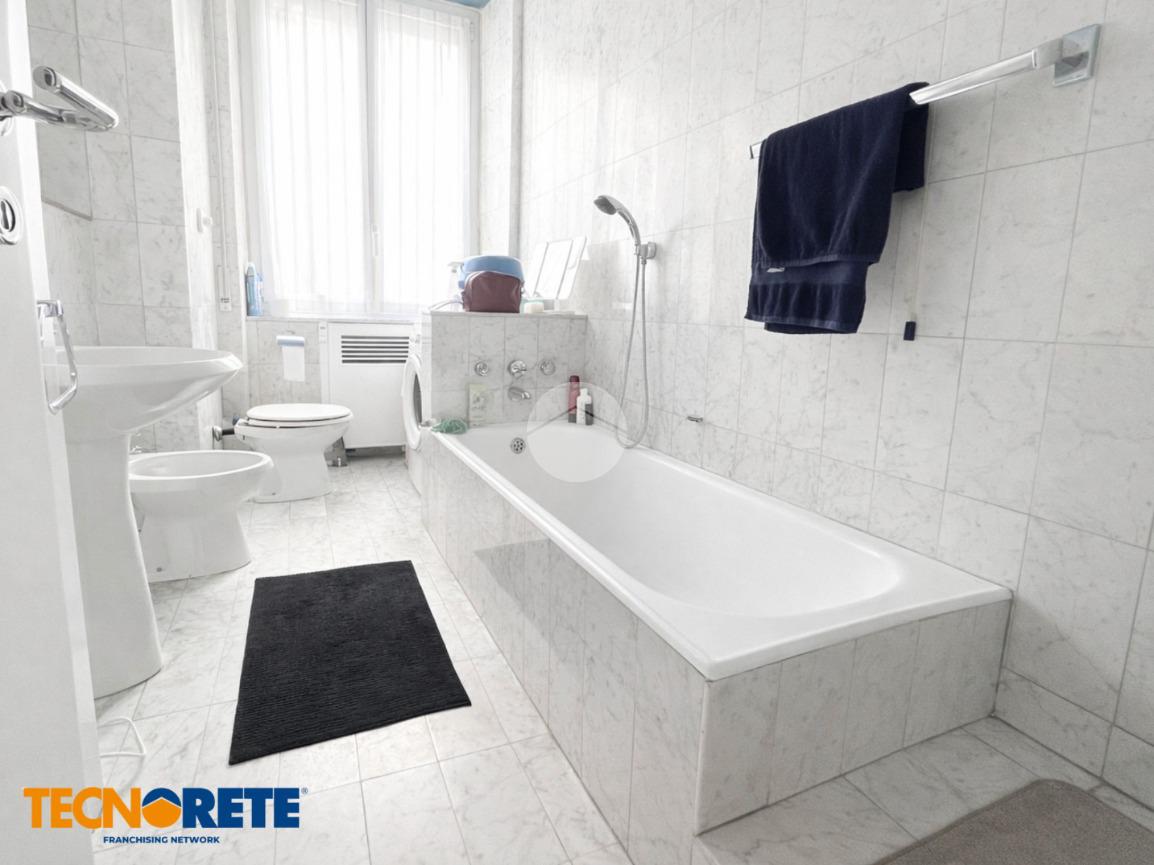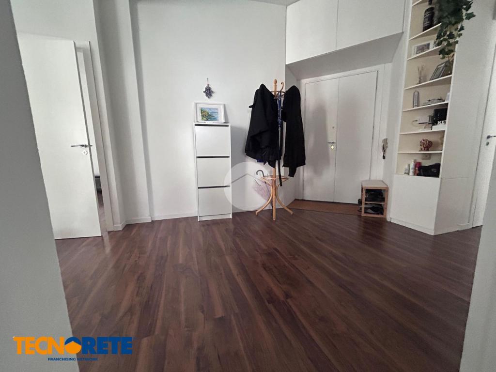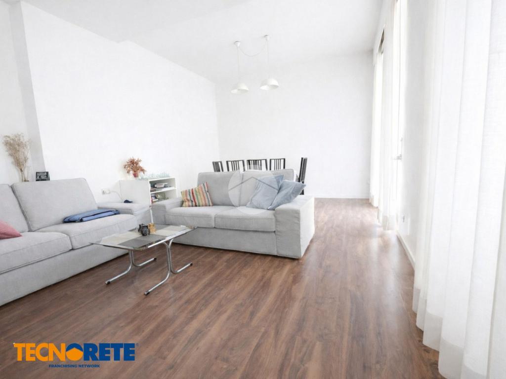 Il soggiorno è spazioso e accogliente con accesso al balcone; la cucina rimane comodamente separa dalla zona pranzo. Il bagno è finestrato, dotato di vasca e box doccia. Presenti due ampie cambere da letto, una delle quali dotata di cabina armadio.